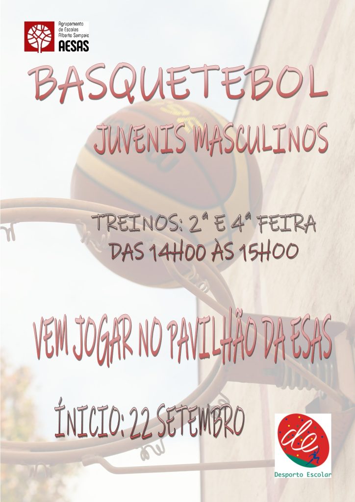 CHAMA POR TI! BASQUETEBOL És apaixonado por basquetebol e queres representar o teu Agrupamento de Escolas? O Desporto Escolar convida-te a fazer parte da nossa equipa de juvenis masculinos. ​Onde? Pavilhão da Escola Alberto Sampaio ​Quando? Todas as Segundas e …